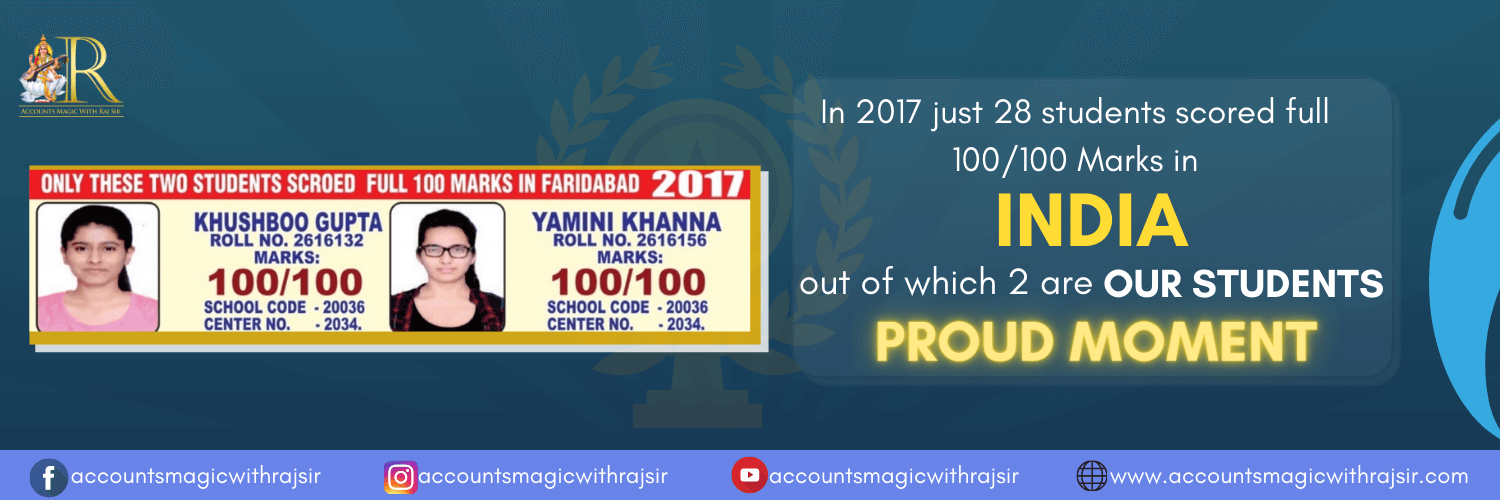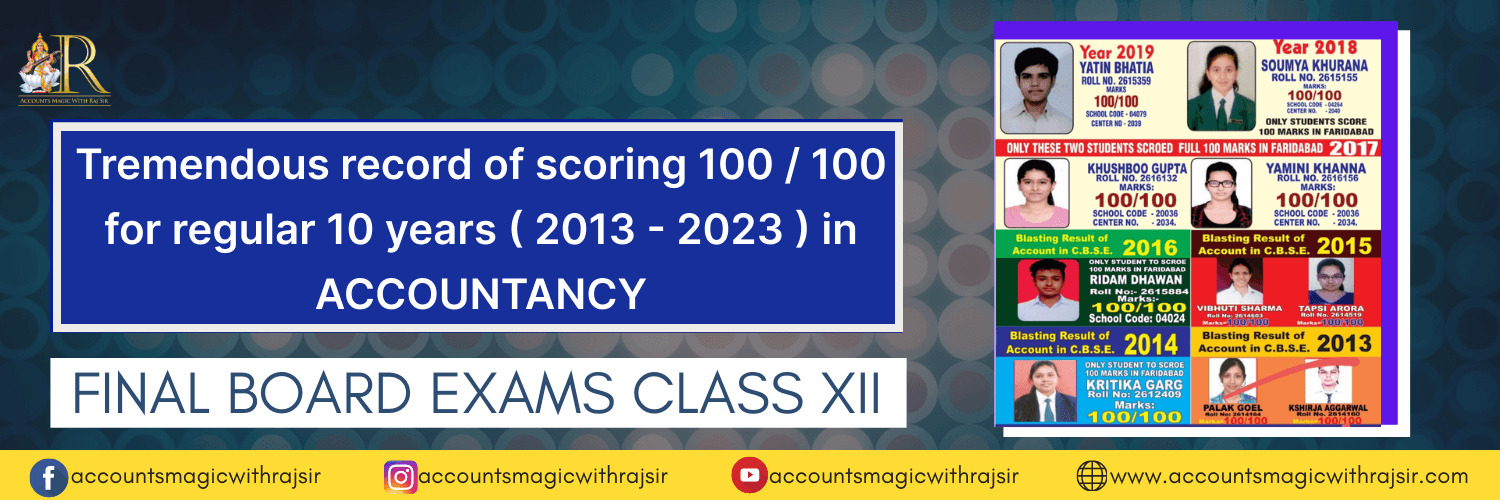 Best concepts of accountancy by renowned faculty of India Raj Singh having a Tremendous Record of producing 100/100 in accountancy for Ten years Consecutive from 2013 to 2023 ( details can be checked on the website with reviews, Roll no., school code and centre code of those students ).